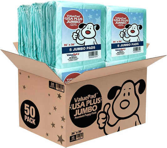 USA plus Puppy Pads, Jumbo 36X36 Inch, 50 Count - Premium Puppy Pee Pads for Dogs, Tear Resistant, Super Absorbent Polymer Gel Core, 5-Layer Design